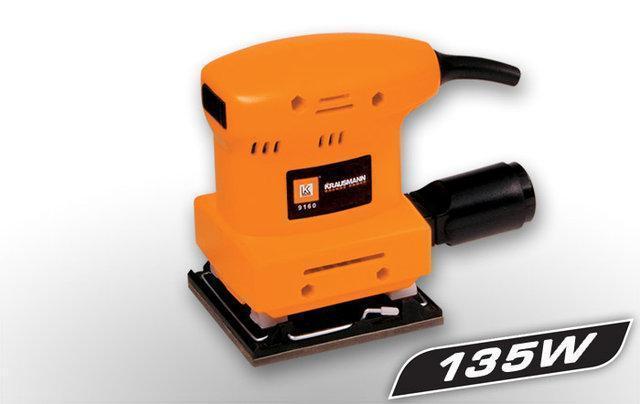 Ηλεκτρικό παλμικό τριβείο KRAUSMANN με εξαγωγέα σκόνης. Το 9160 αποτελεί μια οικονομική λύση που μπορεί ο καθένας να χρησιμοποιήσει σε καθημερινές εργασίες. Για την συγκράτηση των γυαλόχαρτων υπάρχουν μπρος και πίσω δυο κλιπς. Στο πίσω μέρος του τριβείου υπάρχει έξοδος που μπορεί να τοποθετηθεί σακούλα για την συλλογή της σκόνης που δημιουργείται κατά την εργασία. Το κουμπί για την εκκίνηση του 9160 βρίσκεται στο μπροστινό μέρος για άμεσο έλεγχο του εργαλείου.